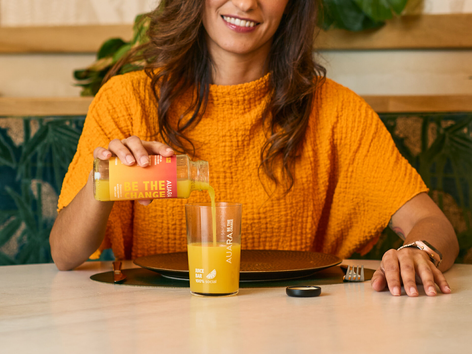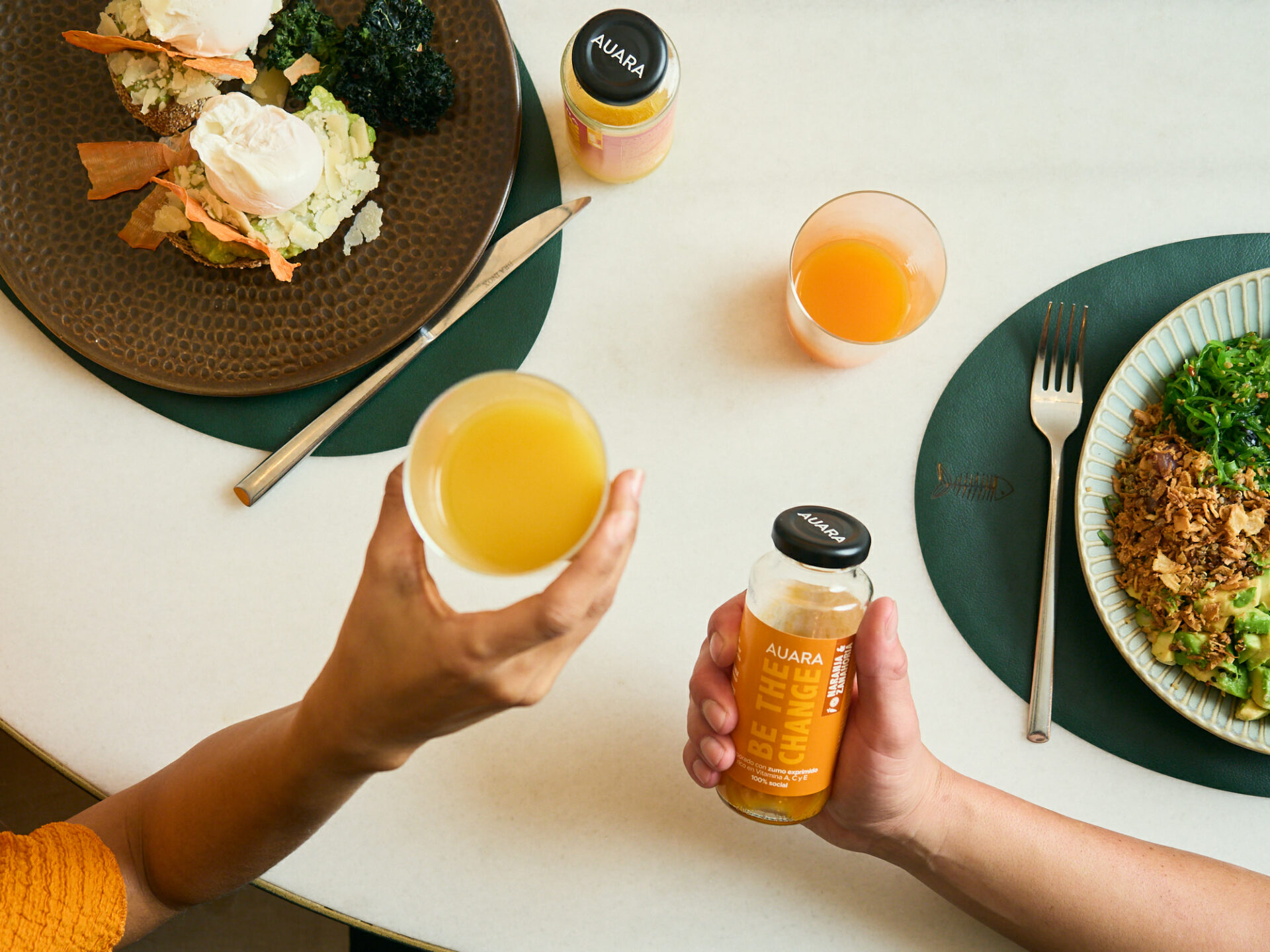 Sesión en restaurantes para los zumos Auara Juice. Ahora en los mejores restaurantes.